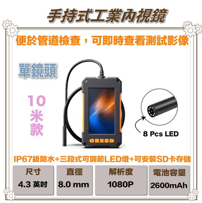 單鏡頭手持式工業內視鏡(10米)