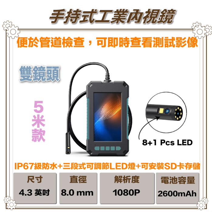 雙鏡頭手持式工業內視鏡(5米)