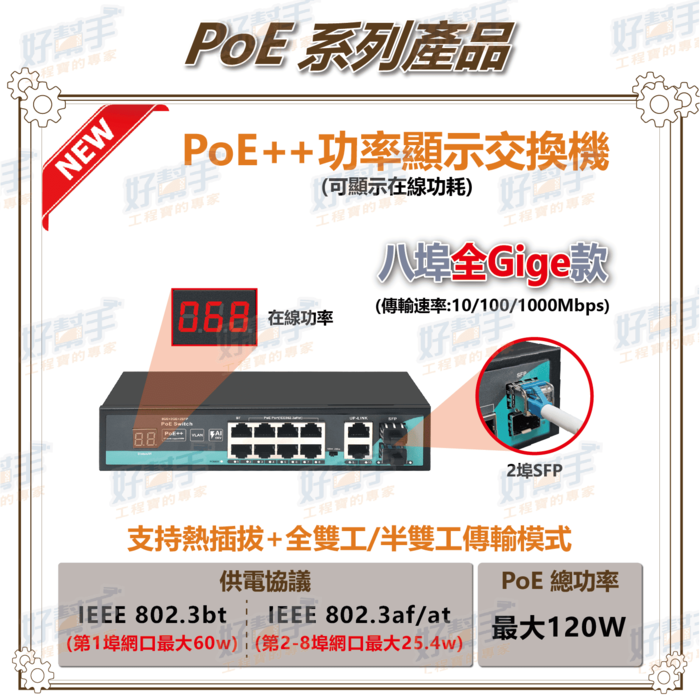 8埠 PoE++ AI數顯交換機(百兆款/千兆款)