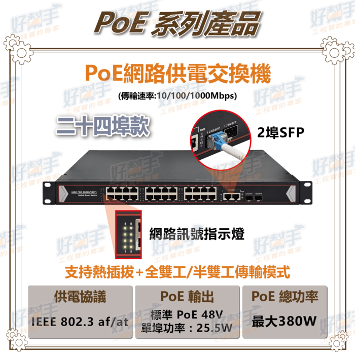 24 埠千兆款 PoE 交換機(24+2 埠全 1000M+2 埠光模組)